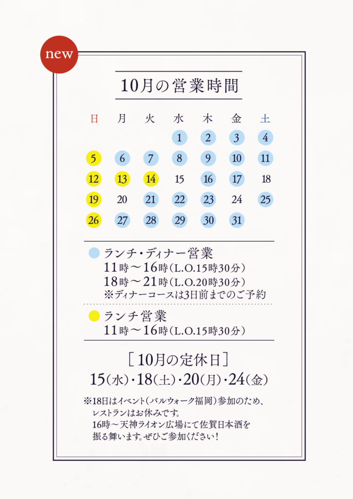 ※ディナーコースご利用のお客様は、3日前までにご予約ください。